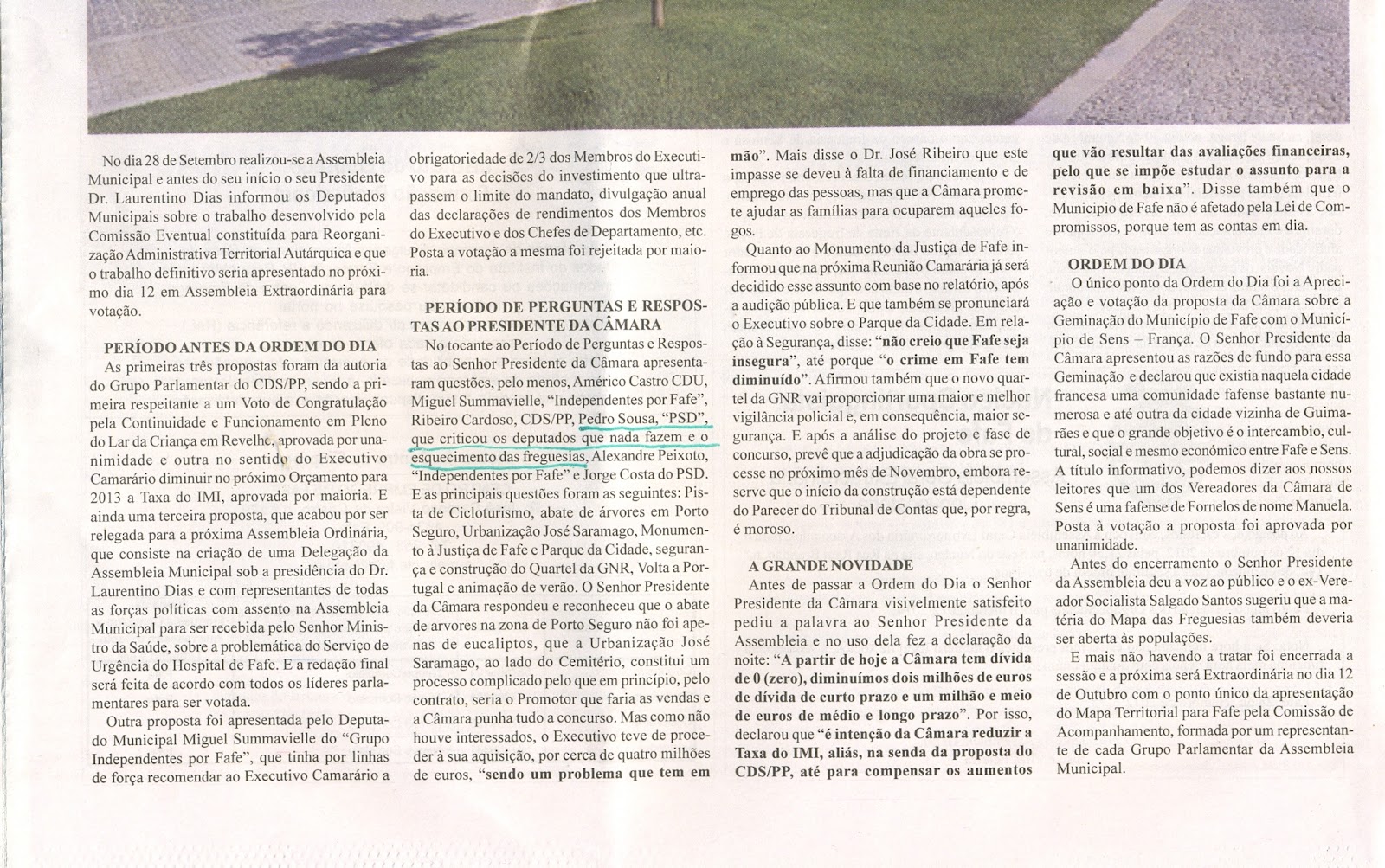 Pedro Sousa, Intervenção na Assembleia Municipal de Fafe, 28 de Setembro de 2012.